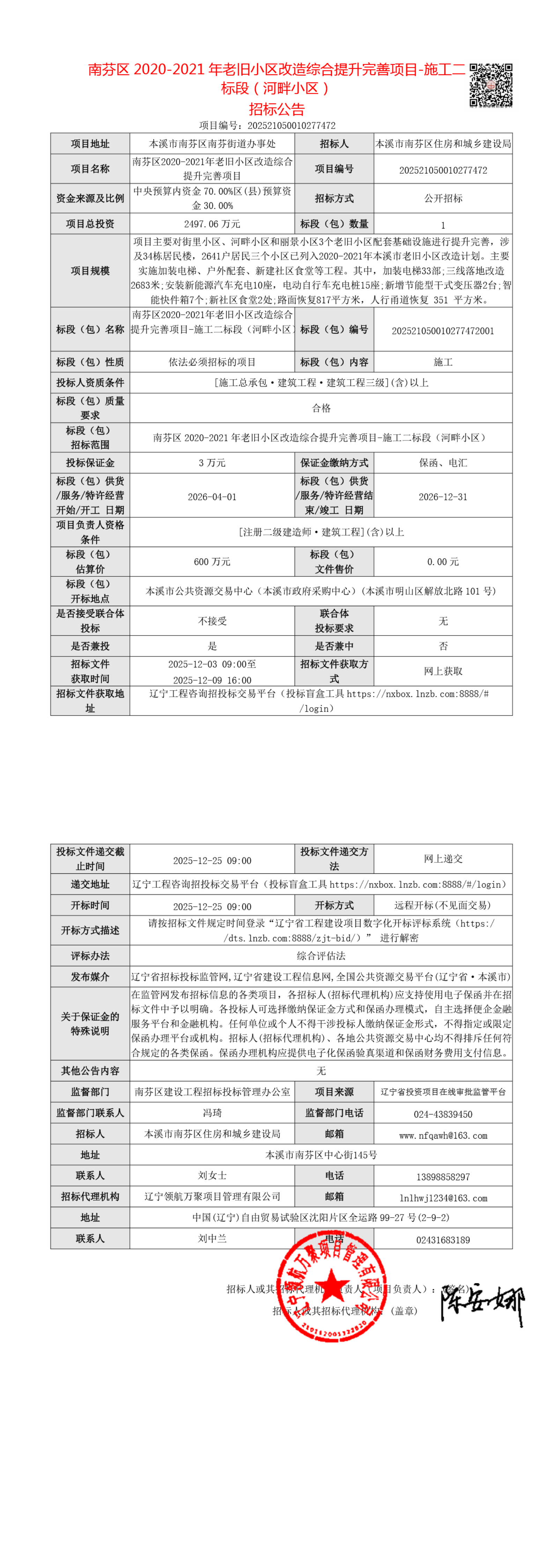 南芬区2020-2021年老旧小区改造综合提升完善项目-施工二标段(河畔小区)